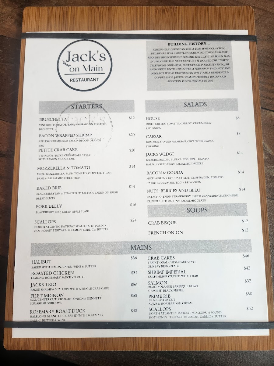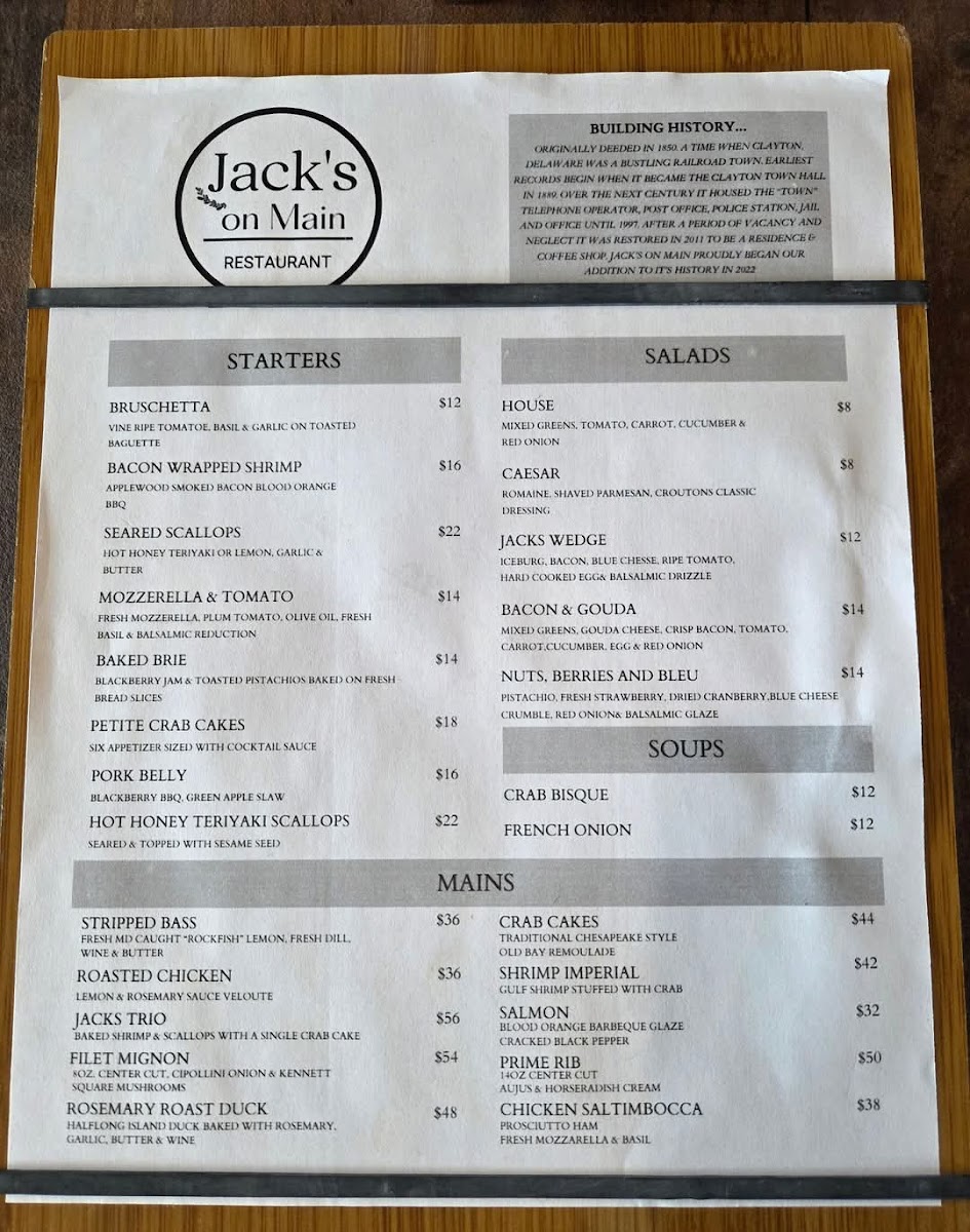 Welcome to Jack’s on Main, a delightful culinary gem nestled at 314 Main St, Clayton, DE. This cozy eatery prides itself on a menu brimming with fresh, seasonal ingredients and mouthwatering options. Patrons rave about its inviting atmosphere, where an open view of the kitchen enhances the dining experience.